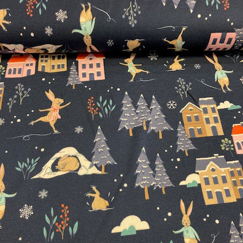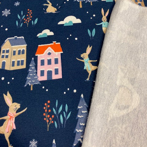 French Terry - Konijntjes en dennenbomen - € 28/m