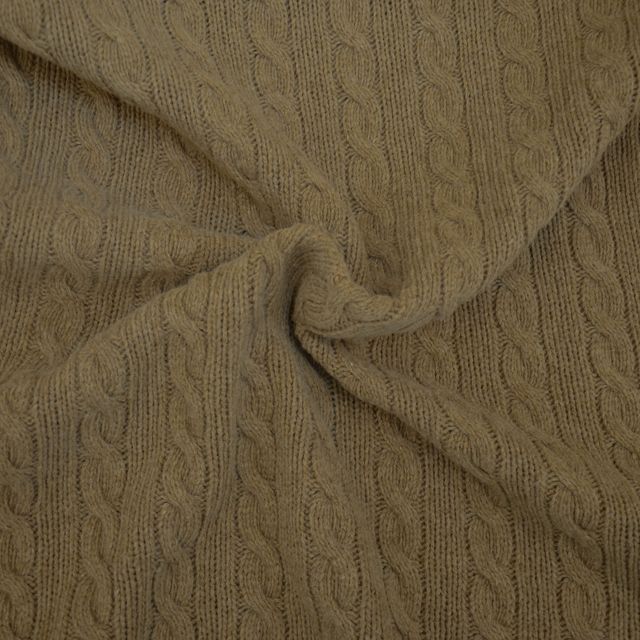 Een gebreide stof in wol met kabels (het ziet eruit als een zelfgebreide tui)ideaal voor het naaien van pull, trui of kleed