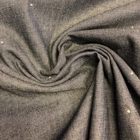Een dunne jeansstof ( Chambray) met glitter kleine studs ideaal voor het naaien van hemd, top broek, rok of kleed,