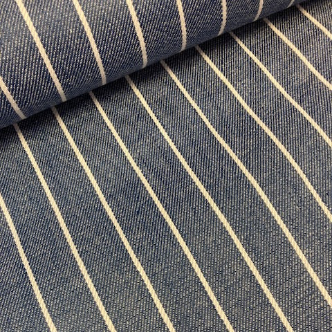 Jeans met verticale streep ingeweven ideaal voor het naaien van kledij zoals rok, kleed of vest alsook accessoires zoals schoudertas