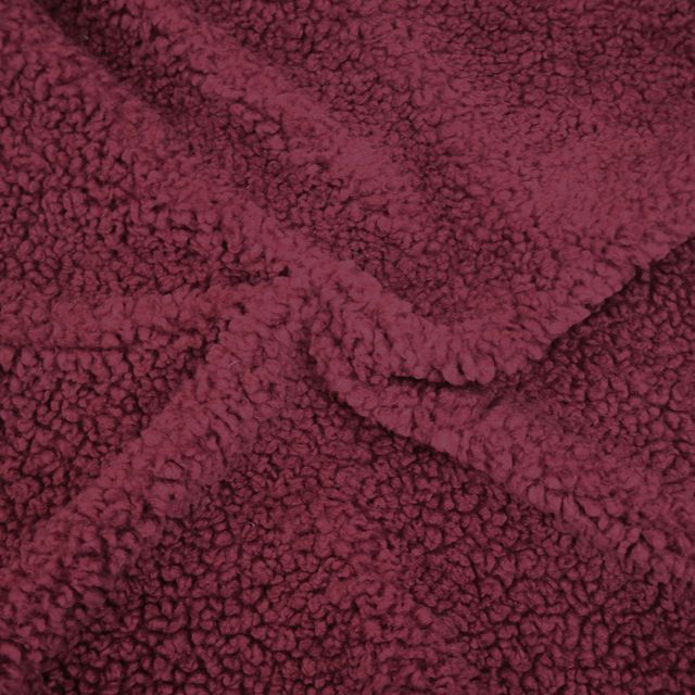 Warme wollen teddy in kleur warm bordeaux ideaal voor het naaien van winterkleding en accessoires