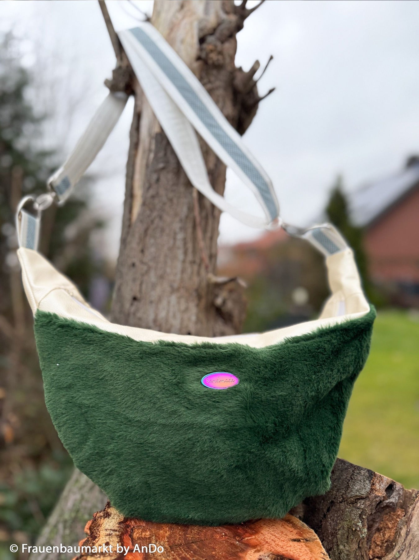 Half lange pels in kleur groen ideaal voor het naaien van winterkleding en accessoires