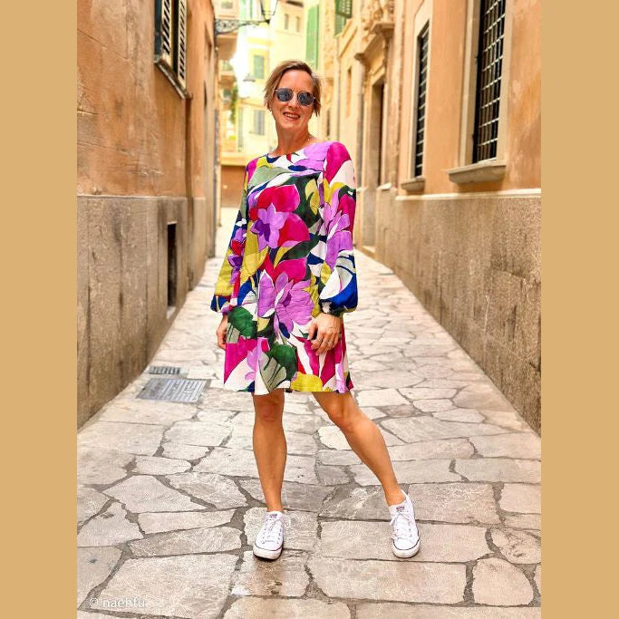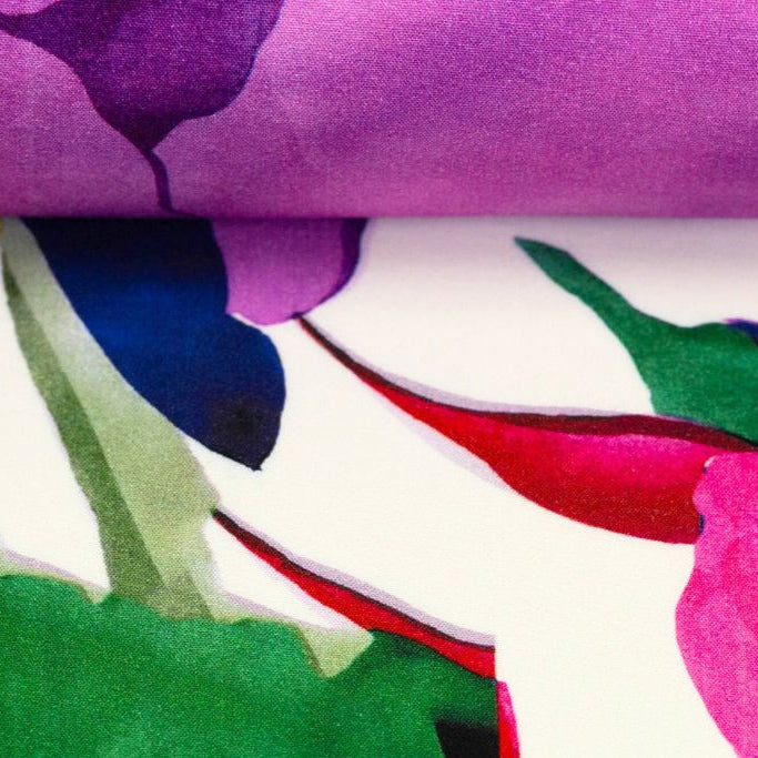 Een soepelvallende viscose met grote bloemen print ideaal voor het naaien van lange rok, kleed, hemd of losse broek