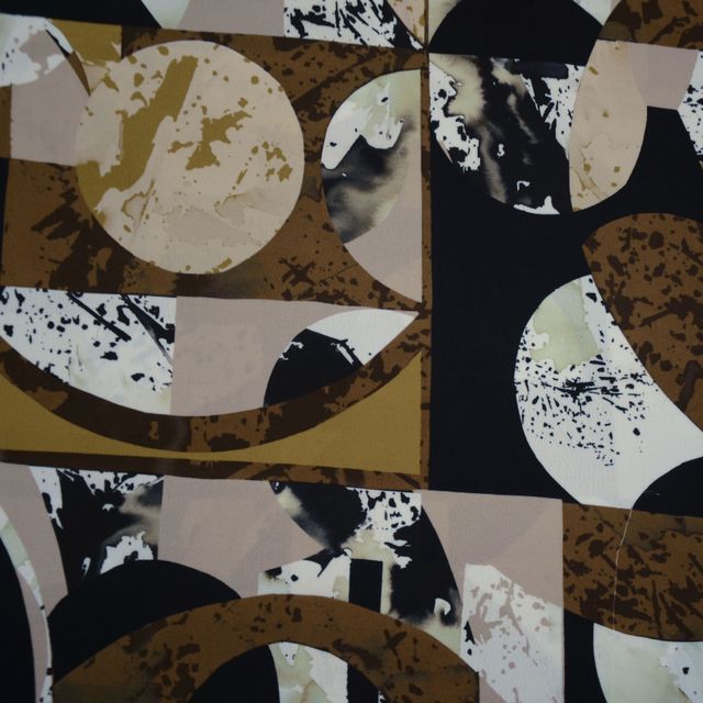 Een zeer soepel vallende viscose met beige en bruine abstracte tekening.